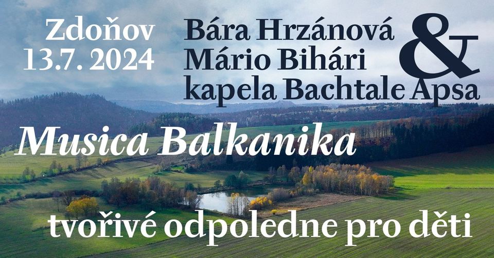 Koncert dne 13. 7. 2024 - Musica Balkanika: Bára Hrzánová, Mário Bihári a kapela Bachtale Apsa